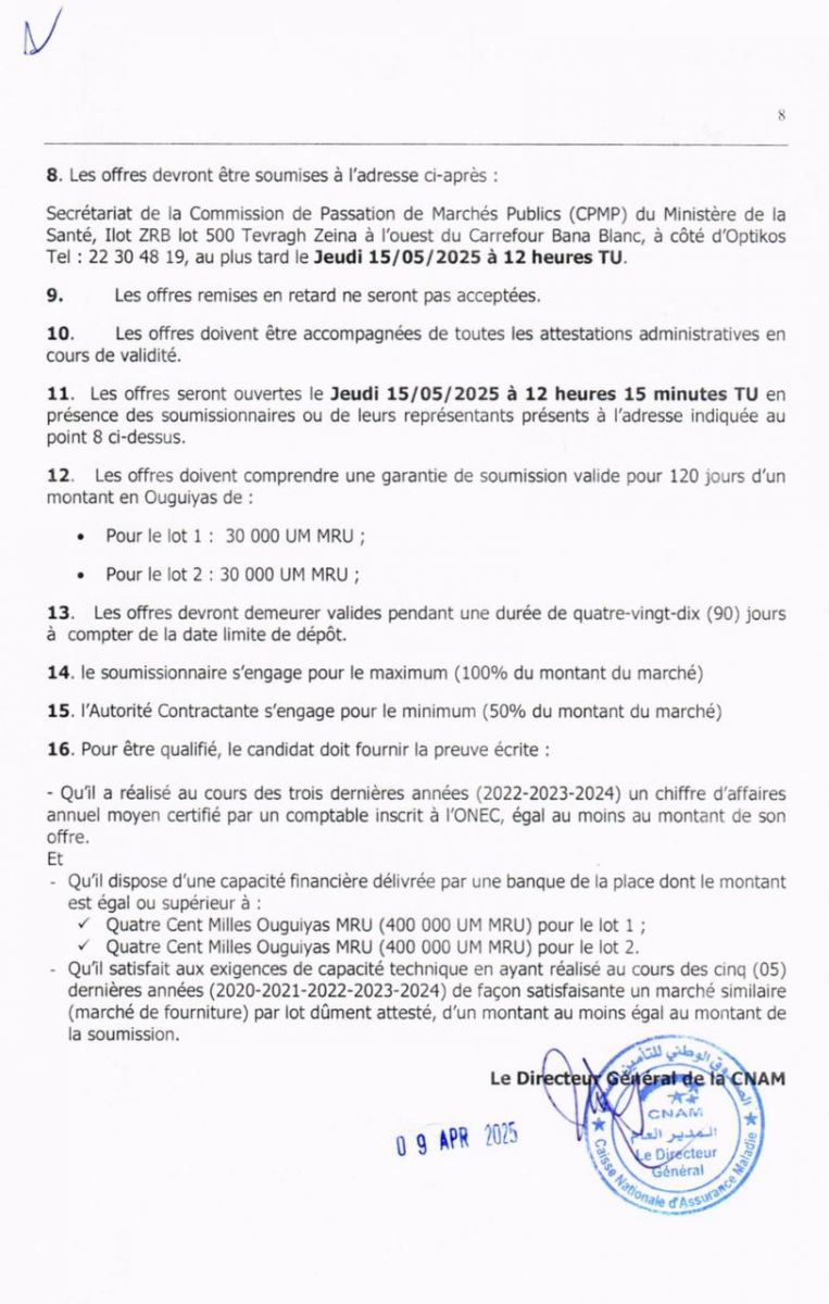 - CDI : Un Million Cent Quarante-cinq Mille Trente-six (1 145 036) MRU TTC ;